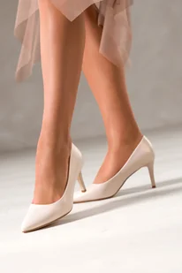 Jasnobeżowe szpilki damskie Sergio Leone z perłową powłoką skórzana wkładka 8663
