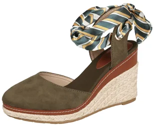 Koturny w kolorze khaki ze słomkową podeszwą oraz ozdobnym wiązaniem na kostce VICES 37 EU