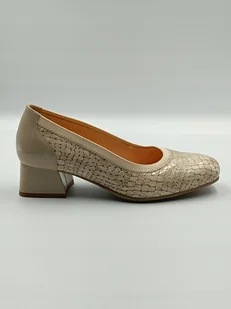 KROKO W WERSJI KOMFORT To wyjątkowe kremowe czółenko to połączenie elegancji z nowoczesnym akcentem. Wykonane z lakierowanej skóry z subtelnym motywem drobnego krokodyla, te czółenka wyróżniają się nie tylko wyjątkowym designem, ale także komfortem noszenia. Dzięki obcasowi typu klocek, specjalnie ręcznie wykonanej wkładce oraz wszytej gumce, buty zapewniają stabilność i wygodę przez cały dzień, idealnie dopasowując się do stopy. Cechy Produktu: Kolor: Kremowy lakier, który dodaje elegancji i pasuje do wielu stylizacji Materiał: