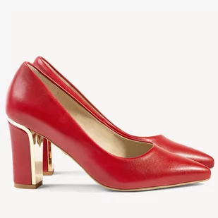 Licowe czółenka na ozdobnym obcasie Irene czerwone