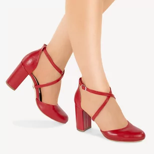 Licowe czółenka z paseczkami na słupku Selena czerwone - BRILU