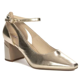 Maciejka Czółenka Damskie Złote Złote czółenka damskie Maciejka to elegancka propozycja na sezon wiosna-lato 2025. Wykonane z naturalnej skóry, zapewniają ko...