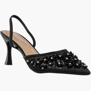 Szpilki Damskie Eleganckie Buty Na Obcasie z perełkami Czarne Czarny 38 Eleganckie czarne czółenka damskie na szpilce typu slingback z ozdobną aplikacją to wyjątkowe połączenie klasycznej formy, biżuteryjnych detali i kobiecej finezji, idealne jako buty wizytowe oraz wieczorowe. Smukły nosek w szpic, delikatnie odkryta pięta oraz stabilny obcas sprawiają, że te szpilki damskie pięknie wysmuklają sylwetkę i nadają stylizacji luksusowego charakteru. To efektowne buty na obcasie dla kobiet, które doskonale uzupełnią kreacje koktajlowe, eleganckie sukienki i wieczorowe stylizacje. PARAMETRY I NAJWAŻNIEJSZE INFORMACJE: Bogata ozdobna aplikacja nadaje butom luksusowy i biżuteryjny charakter Smukły nosek w szpic optycznie wydłuża stopę i nogi Stabilny obcas typu szpilka podkreśla elegancję i zapewnia pewność kroku Odkryta pięta slingback zwiększa lekkość fasonu i komfort noszenia Elastyczny pasek dopasowuje się do stopy i stabilizuje ją podczas chodzenia Klasyczny czarny kolor idealny do stylizacji formalnych i wieczorowych Miękkie wnętrze zapewnia wygodę nawet przy dłuższym użytkowaniu Efektowny, kobiecy fason doskonały na wesele, bankiet i specjalne okazje ROZMIARÓWKA: