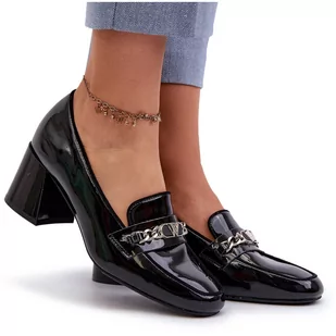 Vinceza Lakierowane Czółenka Na Niskim Obcasie Z Ozdobą Czarne Makki