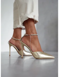 Wysokie szpilki z ozdobnym łańcuszkiem - złote