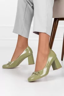 Zielone czółenka skórzane na słupku ze złotą sprzączką PRODUKT POLSKI Casu 2509-41