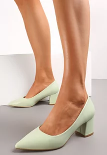 Zielone Jednolite Czółenka z Imitacji Skóry na Niskim Słupku Drema