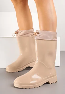 Beżowe Lakierowane Kalosze ze Ściąganą Cholewką Fevaselle