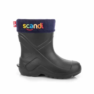 Dziecięce kalosze ocieplane, Lemigo . Kolor: Czarny. Skład: materiał zewnętrzny - 100% EVA podeszwa - 100% EVA Rozmiary 24-31 posiadają kołnierz sztruksowy z...