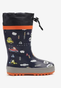 Granatowe Kalosze na Grubej Podeszwie z Cholewką ze Ściągaczem Redanisse