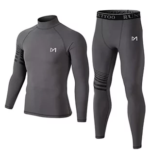 MEETYOO Męska bielizna termiczna, szybkoschnąca warstwa bazowa górna długie kalosze zimowy zestaw termiczny sportowy strój kompresyjny na trening, narciarstwo, bieganie, wędrówki, szary, L