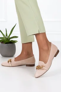 Beżowe lordsy skórzane ze złotą ozdobą PRODUKT POLSKI Casu 3038-41