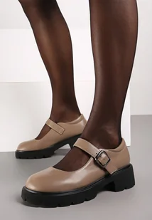 Beżowe Płaskie Półbuty w Stylu Mary Jane Ozdobione Sprzączką Iveonna