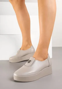 Jasnobeżowe Półbuty na Koturnie z Aplikacją z Przodu Verilisa