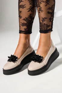 Beżowe półbuty skórzane damskie na koturnie z czarnymi kryształkami produkt polski casu 2824-130-no-37 - Casu