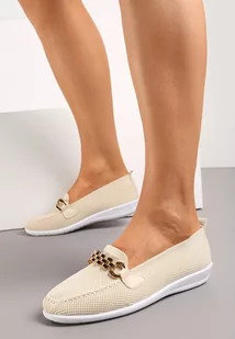 Beżowe Półbuty z Elastyczną Cholewką i Elegancką Klamerką Naelle