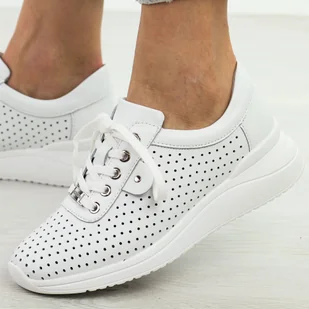Białe skórzane półbuty damskie na wiosnę, lato oraz jesień