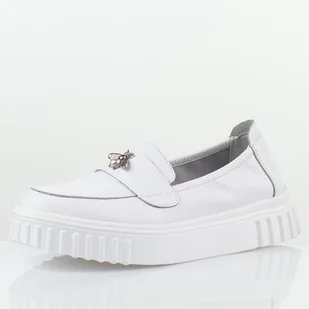 to stylowa i komfortowa propozycja na wiosnę oraz lato. Wykonane z wysokiej jakości skóry naturalnej, zapewniają trwałość i wygodę na co dzień. Wsuwany model ułatwia szybkie zakładanie, a miękka wkładka ze skóry naturalnej gwarantuje komfort użytkowania przez cały dzień. Półbuty osadzone są na masywnym spodzie, który dodaje im nowoczesnego charakteru i zapewnia stabilność oraz wygodę podczas chodzenia. Klasyczna biel sprawia, że buty doskonale komponują się zarówno z codziennymi, jak i bardziej eleganckimi stylizacjami.
