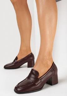 Bordowe Półbuty na Słupku z Kwadratowym Noskiem i Ozdobnym Paskiem Smotere