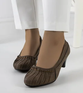 Czółenka Santro wsuwane. Osadzone na niskim obcasie, z zaokrąglonym noskiem, który wysmukli stopę. Wykonane z eko-skóry, zdobione marszczeniem na przodzie ch...