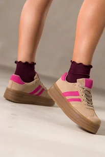 TRAMPKI DAMSKIE ZE SKÓRY PÓŁBUTY SPORTOWE FILIPPO 6776 BEŻOWE FUKSJA RÓŻOWE
