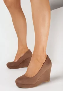 Ciemnobeżowe Wsuwane Półbuty z Ekozamszu na Koturnie Nicaria