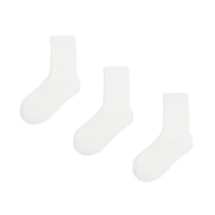 Trójpak długich skarpetek damskich w stylu sportowym, uszytych z dzianiny o wysokiej zawartośći bawełny. Każda z par wykończona elastycznym ściągaczem w prążki.