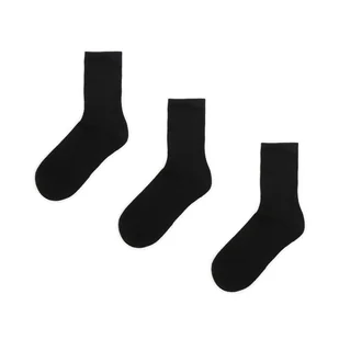 Trójpak długich skarpetek damskich w stylu sportowym, uszytych z dzianiny o wysokiej zawartośći bawełny. Każda z par wykończona elastycznym ściągaczem w prążki.