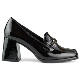 Czarne eleganckie półbuty lakierowane na wysokim obcasie 24-12322B - Inna marka