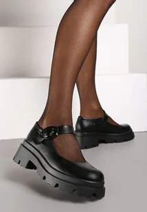 Czarne Półbuty Mary Jane na Grubej Podeszwie z Ozdobną Sprzączką Fenzina