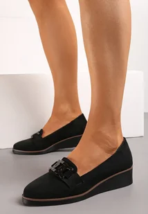 Czarne Półbuty w Stylu Mokasynów na Koturnie ze Skórzaną Wkładką z Ozdobnym Paskiem Rieva