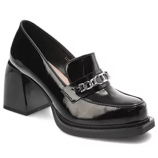 S.Barski HY318 damskie półbuty mokasyny czarne lakierki
