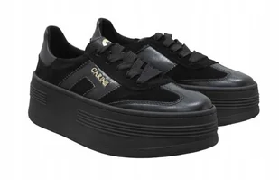 Czarne półbuty sneakersy Carinii B9992 damskie platforma skóra r.36