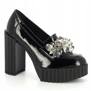 Czarne półbyty modne eleganckie z kamykami CARINII B8647-037 skóra r.39 - Carinii