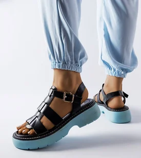 Buty te posiadają płaski obcas, co dodaje im eleganckiego charakteru, a sprzączka pozwala na dopasowanie ich do swojej stopy. Sandały na niebieskiej platform...