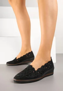 Czarno-Brązowe Wsuwane Półbuty o Ażurowym Wykończeniu z Elastyczną Podeszwą Dimon