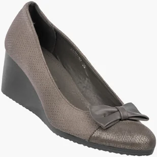 Czółenka Damskie Ekoskóra Buty Na Koturnie Półbuty Niskie Szarobrązowe Szary 38 Wyjątkowe czółenka damskie Jezzi na eleganckim koturnie to idealny wybór dla kobiet, które chcą połączyć styl, wygodę i codzienną funkcjonalność. Subtelnie połyskująca cholewka z delikatną perforacją oraz dekoracyjna kokarda tworzą efektowny, kobiecy design, który doskonale uzupełnia zarówno stylizacje miejskie, jak i bardziej szykowne. Miękka skórzana wkładka oraz stabilna podeszwa zapewniają całodzienny komfort, sprawiając, że te czółenka staną się Twoim ulubionym obuwiem na każdą okazję. PARAMETRY I NAJWAŻNIEJSZE INFORMACJE: Skórzana wkładka zapewniająca wysoki komfort i dopasowanie Koturnowy obcas gwarantujący stabilność i elegancką linię sylwetki Ażurowa, lekka cholewka zapewniająca przewiewność i nowoczesny wygląd Ozdobna kokarda podkreślająca kobiecy styl i modny charakter Miękkie wnętrze poprawiające komfort noszenia przez cały dzień Antypoślizgowa podeszwa zapewniająca bezpieczeństwo w codziennym użytkowaniu Wsuwany fason ułatwiający szybkie zakładanie i idealne dopasowanie Uniwersalny odcień pasujący do eleganckich i casualowych stylizacji ROZMIARÓWKA: