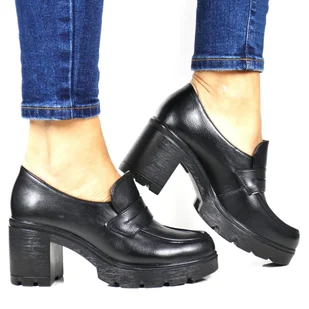 Odkryj nasze wyjątkowe damskie mokasyny na obcasie klocku, dostępne w naszym sklepie internetowym. Wykonane z eko skóry, a wkładka skórzana zapewnia dodatkow...