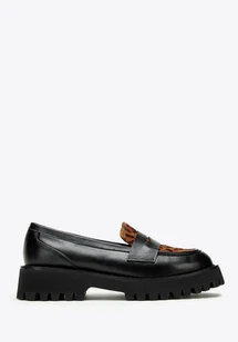Damskie mokasyny skórzane w zwierzęcy wzór czarno-brązowe 39