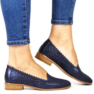 DAMSKIE PÓŁBUTY AŻUROWE NA PŁASKIEJ PODESZWIE MOKASYNY POTOCKI 12320 GRANATOWE