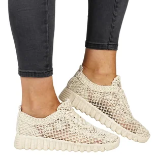 Koronkowe półbuty sportowe z kolekcji wiosenno-letniej. Obuwie zostało wykonane z wysokiej jakości materiału tekstylnego w kolorze białym lub beżowym. Obuwie jest przewiewne, sznurowane, co pozwoli na dopasowanie do stopy. Zobacz już teraz. DŁUGOŚĆ WKŁADKI: