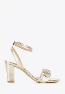 Damskie sandały z marszczonej skóry na słupku złote 36