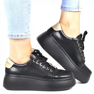 DAMSKIE SNEAKERSY PÓŁBUTY ZE SKÓRY NA GRUBEJ PODESZWIE VINCEZA 66700 CZARNE
