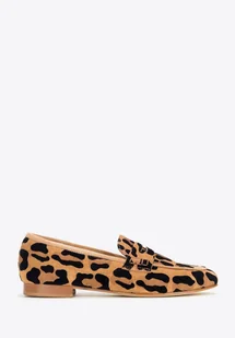 Damskie wsuwane mokasyny zamszowe w panterkę brązowo - czarne 39