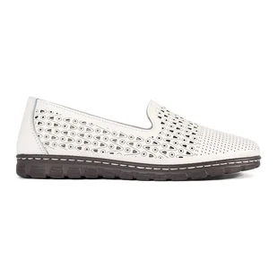 Goodin Ażurowe wygodne półbuty białe baleriny skórzane
