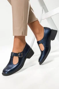 Granatowe półbuty skórzane damskie z wycięciami PRODUKT POLSKI Casu 585-41