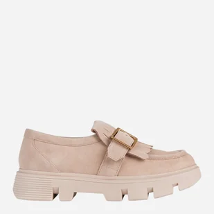 Damskie loafersy Geox to połączenie stylowego designu, komfortu i praktyczności. Cholewka wykonana z zamszu zapewnia miękkość, elegancki wygląd oraz dobrą przepuszczalność powietrza. Model na platformie gwarantuje stabilność i wygodę podczas chodzenia, a dzięki podeszwie z wytłoczeniami zapewnia doskonałą przyczepność do podłoża. Wnętrze buta zapewnia przyjemne uczucie komfortu przez cały dzień. Wyrazisty design uzupełnia stylowy pasek ze złocistą klamrą, która nie tylko dodaje elegancji, ale także umożliwia regulację szerokości dla idealnego dopasowania.