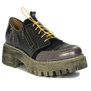 Maciejka Półbuty damskie na platformie skórzane czarny+żółty-41