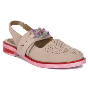 Maciejka Półbuty Różowo-beżowe 05924-15/00-1 Wygodne czółenka na płaskim obcasie renomowanej polskiej marki MACIEJKA to najnowsza propozycja tego producenta na najbliższy sezon wiosna/lato. Cholewka została wykonana z wysokiej jakości skóry naturalnej welurowej w kolorze beżowym z azurowym wzorem na przodzie. Miękka skórzana wkładka oraz lekka elastyczna podeszwa gwarantują wysoki komfort użytkowania. Zgrabnie wykrojona cholewka wysmukla stopę, a wolna pięta zapewnia optymalną temperaturę naszym stopom. Nad cholewką znajduje się pasek z zapinką, który pomoże utrzymać obuwie na stopie.