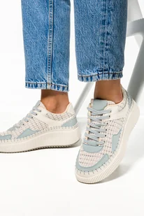 Białe sneakersy skórzane damskie buty sportowe na platformie z kłódką sznurowane PRODUKT POLSKI Casu 1145